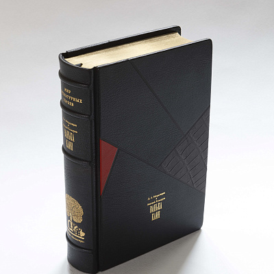 Книга облечена в переплёт ручной работы из кожи производства компании J. Hewit & Sons Ltd (Великобритания) со вставкой из кожи экзотических животных. Футляр покрыт шелком ANTILOTEX (Италия). Тиснение золотом 24K.