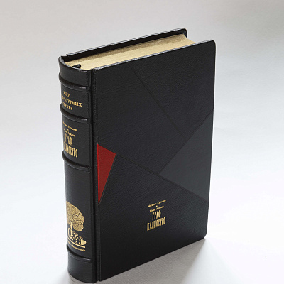 Книга облечена в переплёт ручной работы из кожи производства компании J. Hewit & Sons Ltd (Великобритания) со вставкой из кожи экзотических животных. Футляр покрыт шелком ANTILOTEX (Италия). Тиснение золотом 24K.