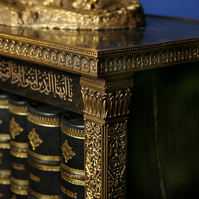 Тома помещены в выполненное в виде Каабы хранилище, украшенное уникальными бронзовыми скульптурами воинов. Хранилище изготовлено из черного