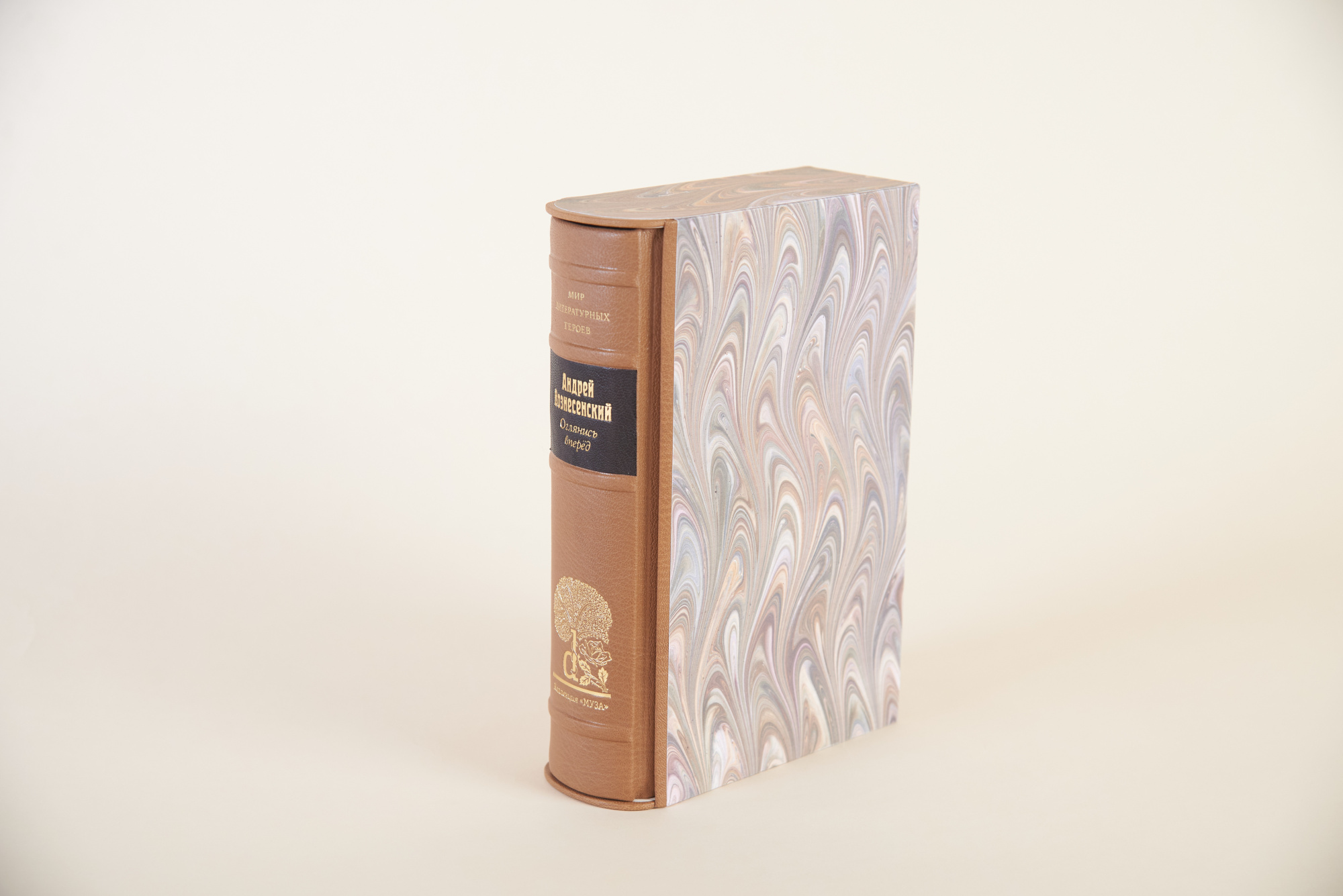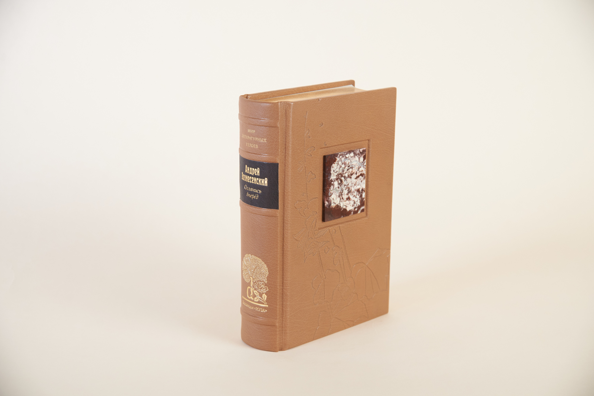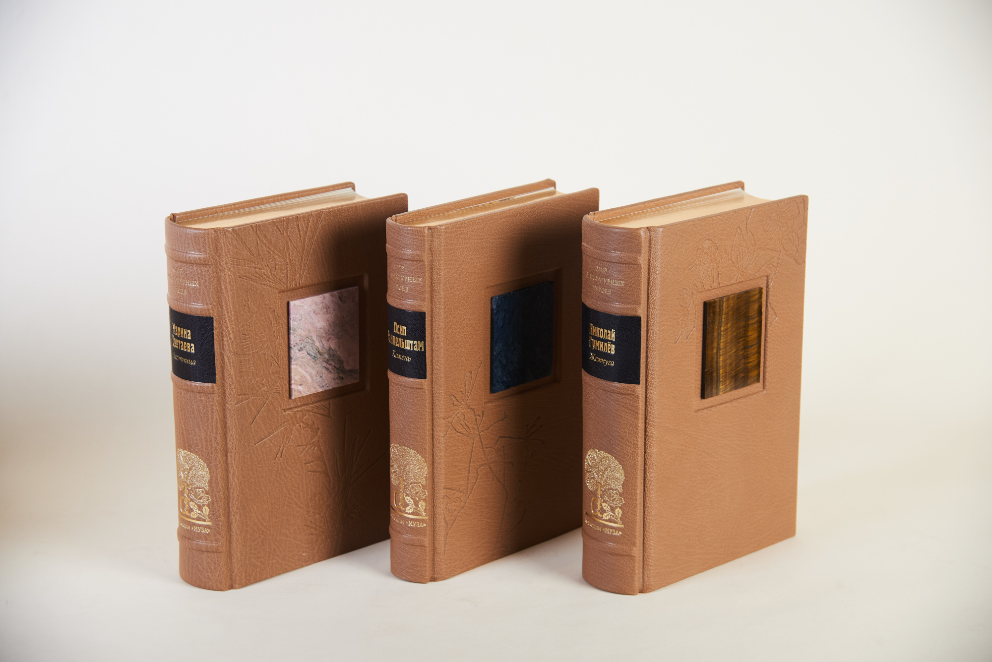 Книга облечена в переплет ручной работы из кожи производства компании J. Hewit & Sons (Великобритания) со вставками из натуральных камней. Каждому тому соответствует свой камень.