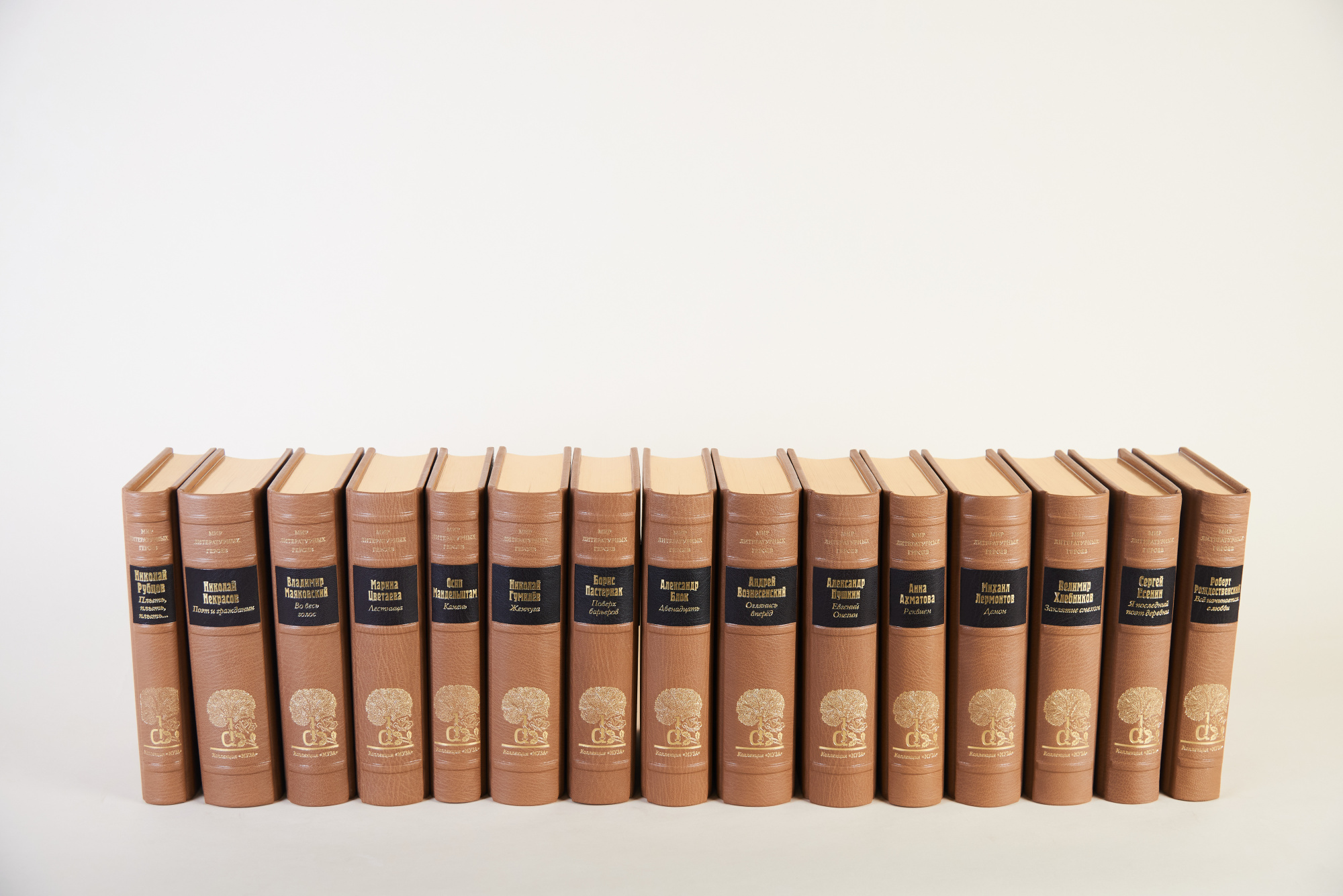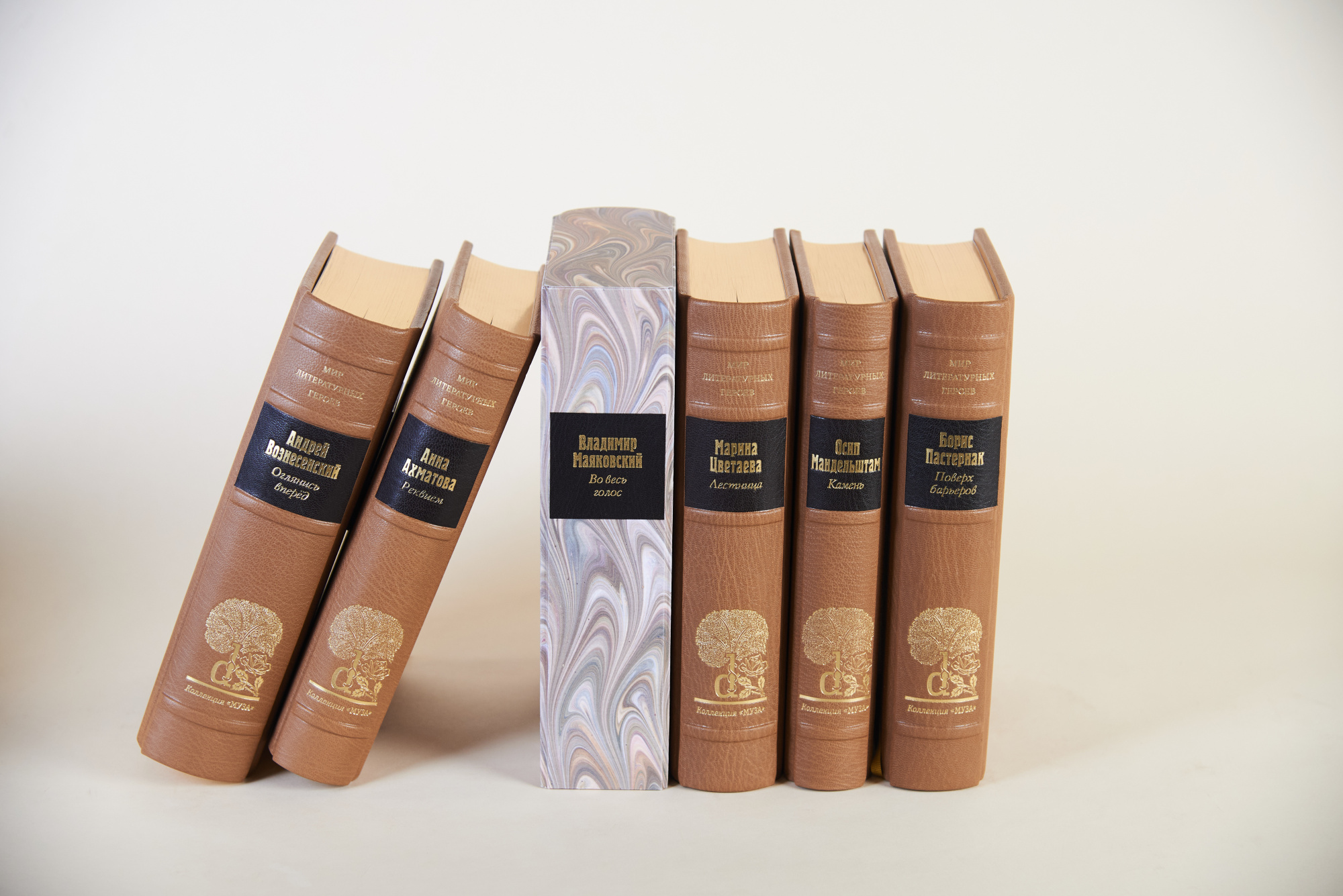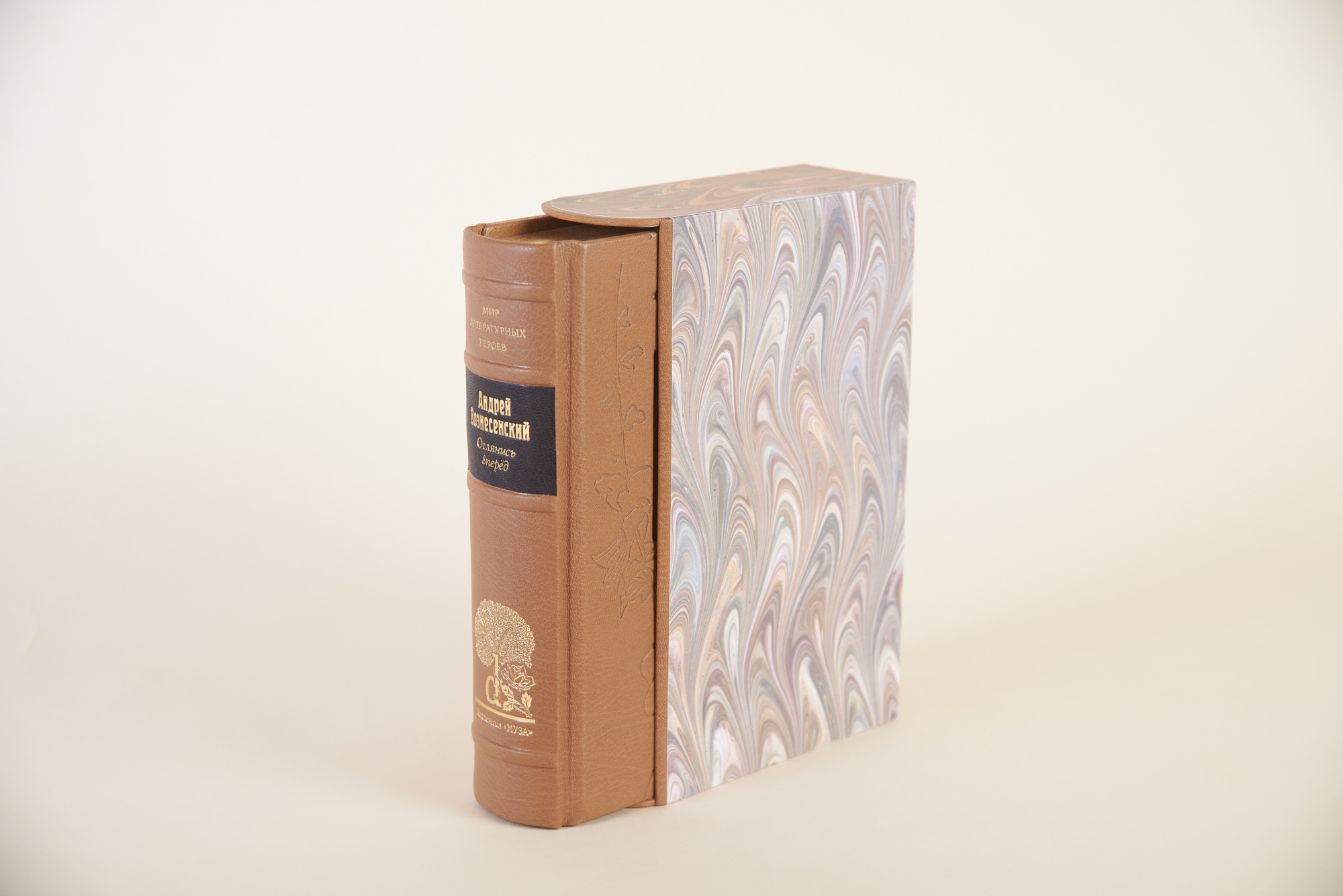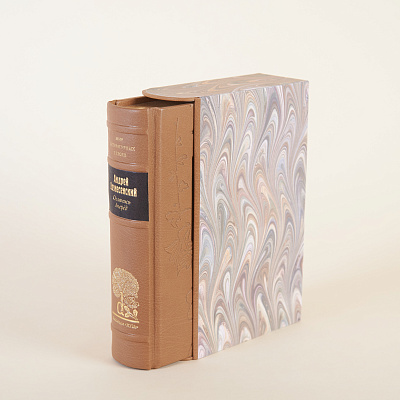 Книга облечена в переплет ручной работы из кожи производства компании J. Hewit & Sons (Великобритания) со вставками из натуральных камней. Каждому тому соответствует свой камень.