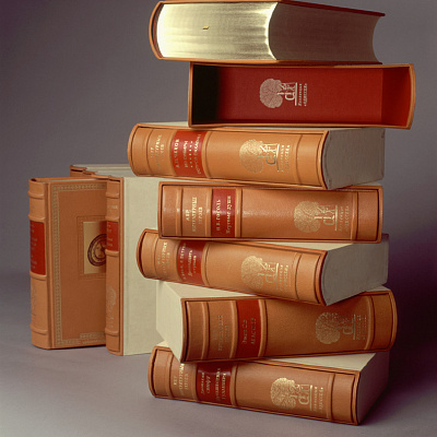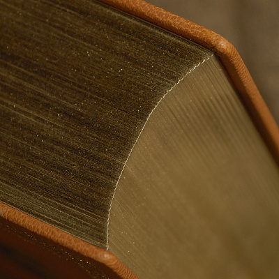 Книга облечена в цельнокожаный переплет Ziegen Narben Vollleder с тиснением золотом 24К, золоченым обрезом, футляр обтянут переплетным материалом Elefantenhaut.