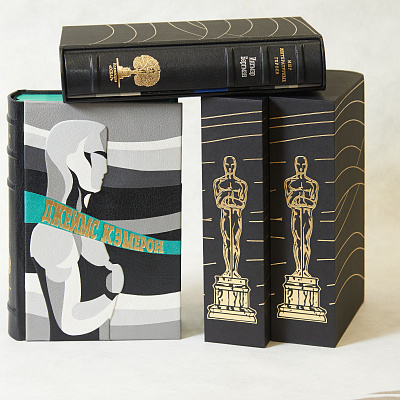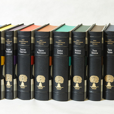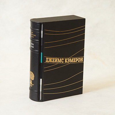 Книга в кожаном переплете ручной работы («Мастерская Приоритет» под руководством Андрея Сайкина). На первой сторонке — аппликация из кожи и тиснение золотом 24 карата.