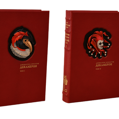 Каждый том коллекции «Эрос» декорирован изготовленным вручную медальоном, соответствующим содержанию книги. Медальоны украшены эмалью.