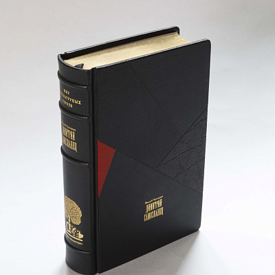 Книга облечена в переплёт ручной работы из кожи производства компании J. Hewit & Sons Ltd (Великобритания) со вставкой из кожи экзотических животных. Футляр покрыт шелком ANTILOTEX (Италия). Тиснение золотом 24K.