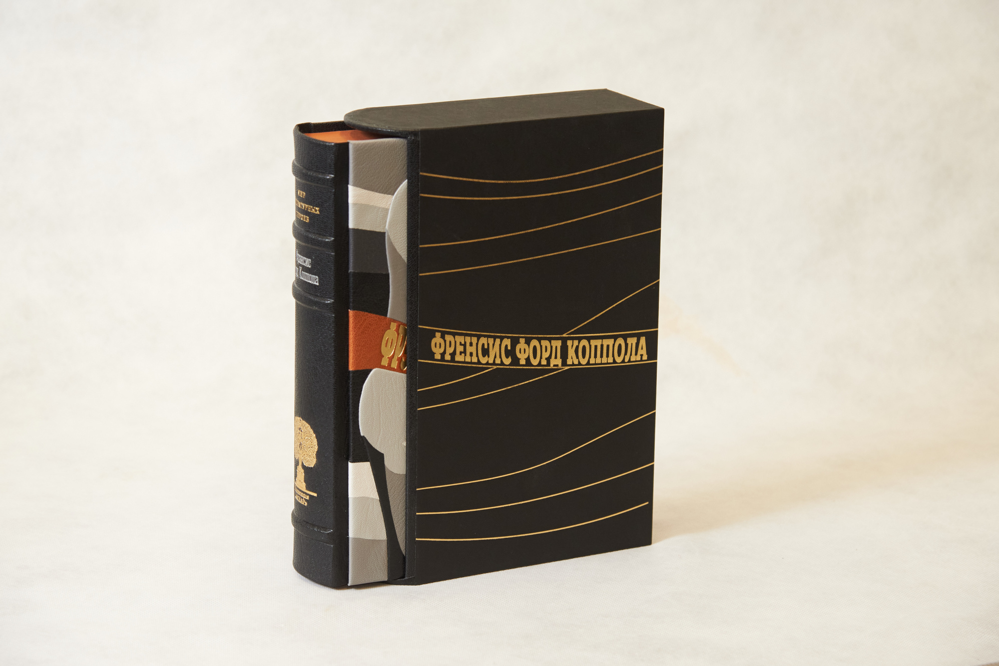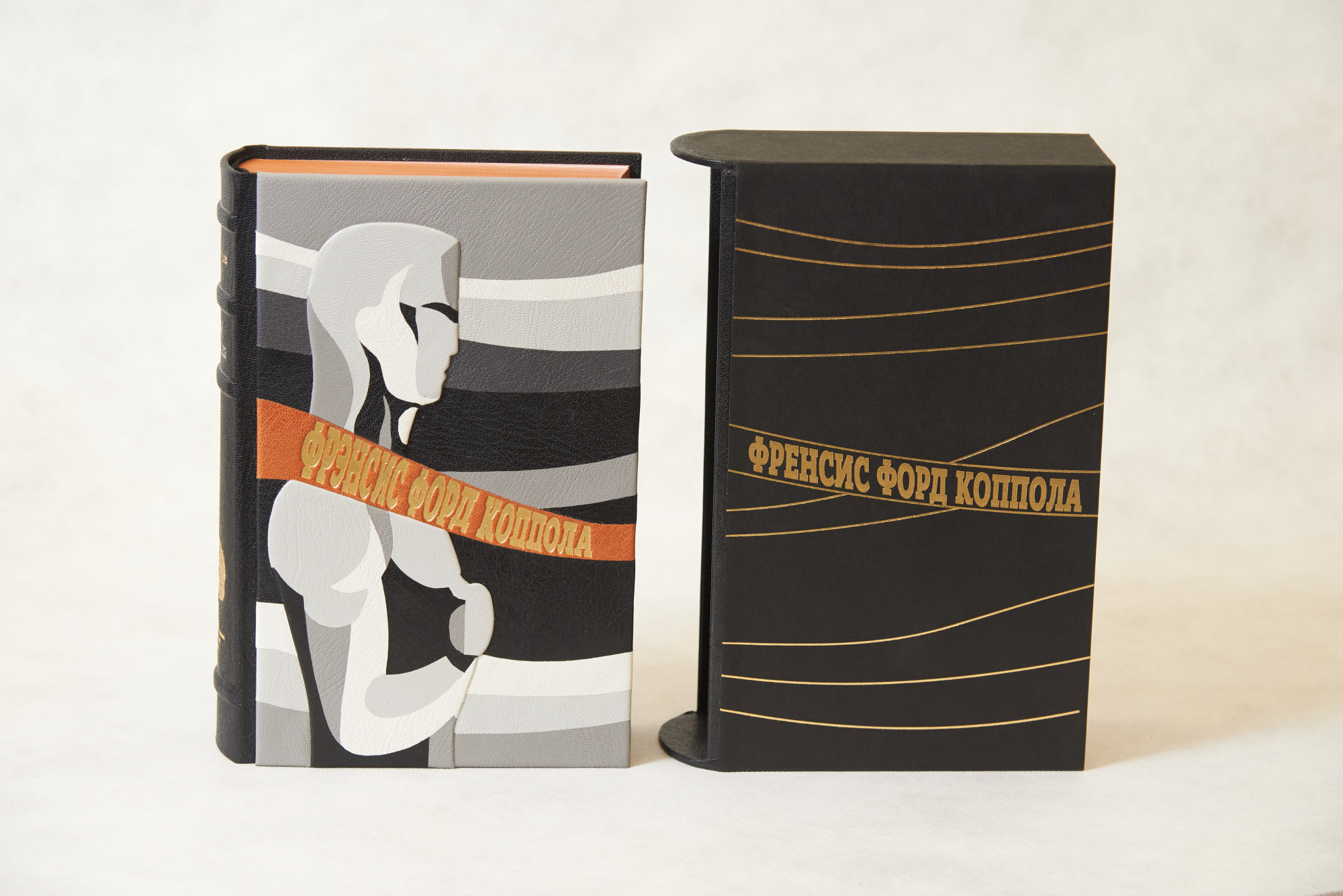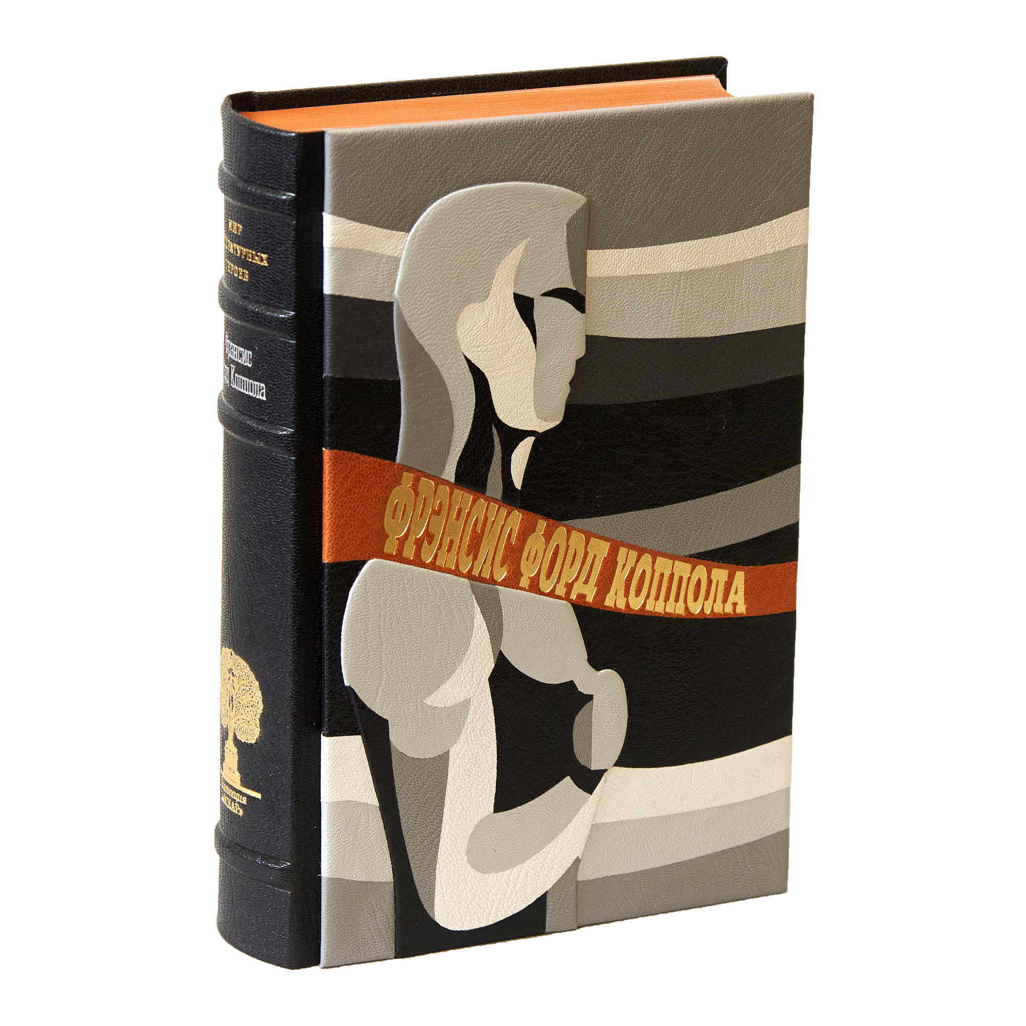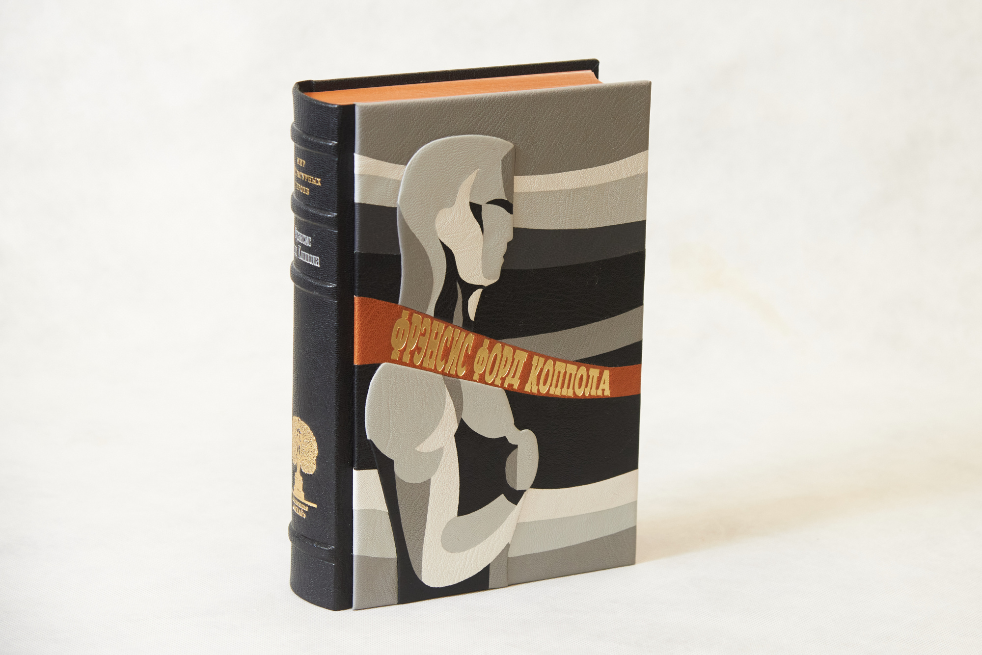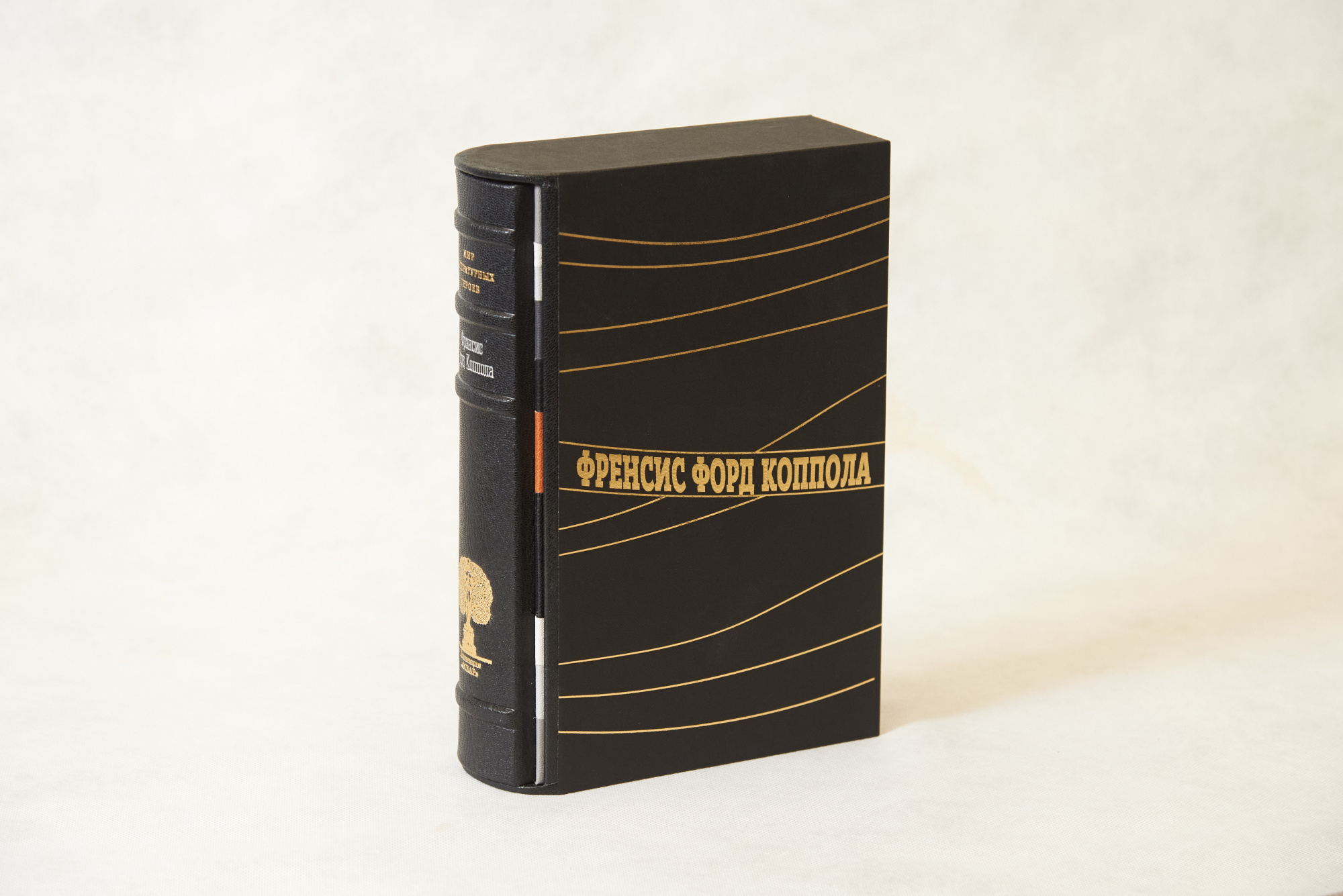 Книга в кожаном переплете ручной работы («Мастерская Приоритет» под руководством Андрея Сайкина). На первой сторонке — аппликация из кожи и тиснение золотом 24 карата.