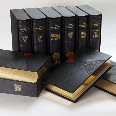Книга облечена в переплёт ручной работы из кожи производства компании J. Hewit & Sons Ltd (Великобритания) со вставкой из кожи экзотических животных. Футляр покрыт шелком ANTILOTEX (Италия). Тиснение золотом 24K.