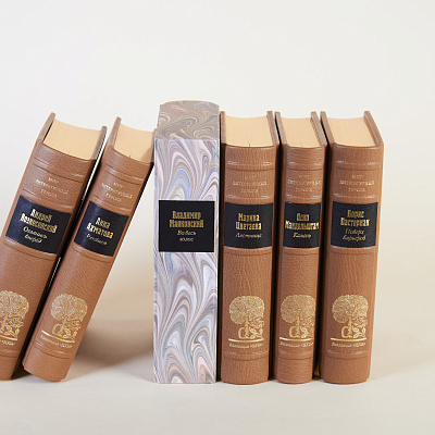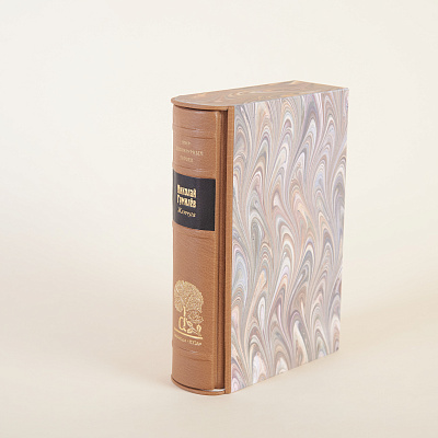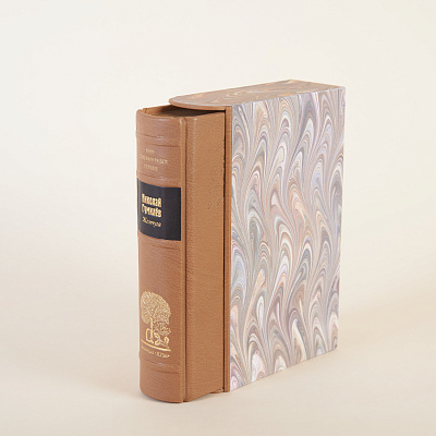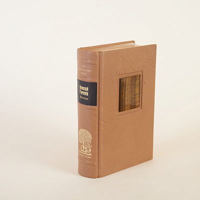 Книга облечена в переплет ручной работы из кожи производства компании J. Hewit & Sons (Великобритания) со вставками из натуральных камней. Каждому тому соответствует свой камень.