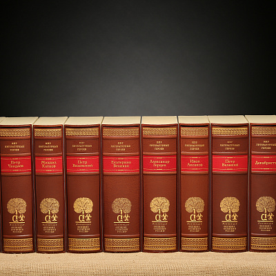 Книга облечена в составной переплет: из кожи Russels (Великобритания) и натурального необработанного шелка Setefi cio VIAGGI (Италия), изготовленный мастером Марио Готтарделло (Италия). Тиснение золотом 24K.
