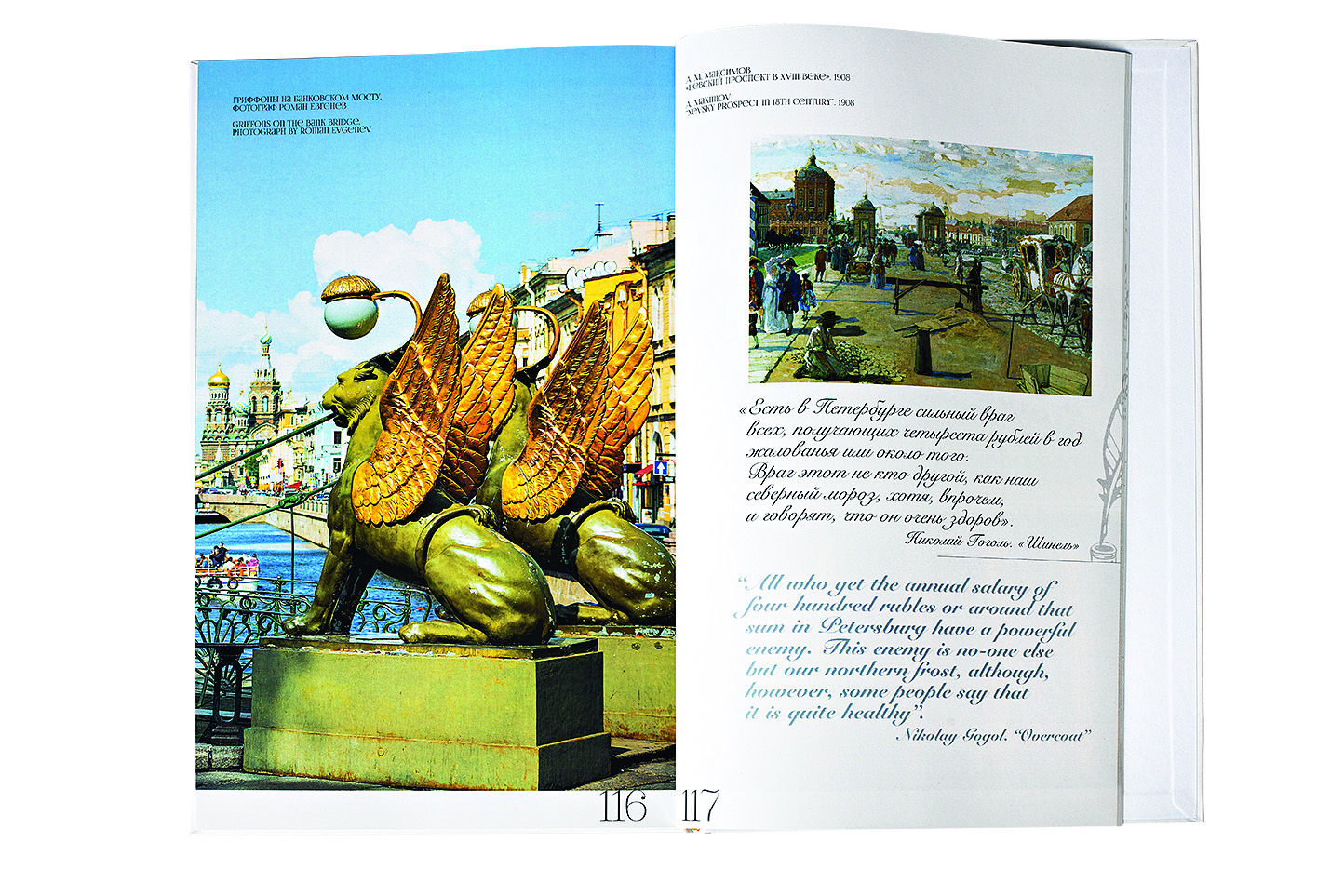 Санкт-Петербурга в сопровождении цитат о городе из литературных произведений и высказываний о нем выдающихся личностей.