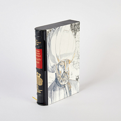 Каждый том помещен в футляр, который запечатан сюжетной иллюстрацией (гравюра) с тиснением золотом.