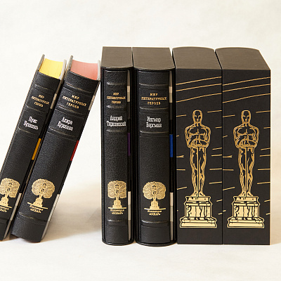 Книга в кожаном переплете ручной работы («Мастерская Приоритет» под руководством Андрея Сайкина). На первой сторонке — аппликация из кожи и тиснение золотом 24 карата.