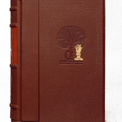 Книга облечена в составной переплет: кожа Bibliofile Ziegen Leder и муаровый переплетный шелк Comtesse с офсетной печатью. Тиснение золотом 24К, обрез золоченый, футляр обтянут кожей с тиснением золотом.